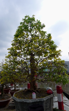 Tại chợ hoa kiểng nằm trên đường Huỳnh Cương (phường An Cư, quận Ninh Kiều) dân buôn bán hoa kiểng cũng như khách tham quan đều trầm trồ khen ngợi cây mai vàng 98 tuổi có dáng hình tháp tuyết đẹp của anh Võ Phước Long – quê ở Hậu Giang.