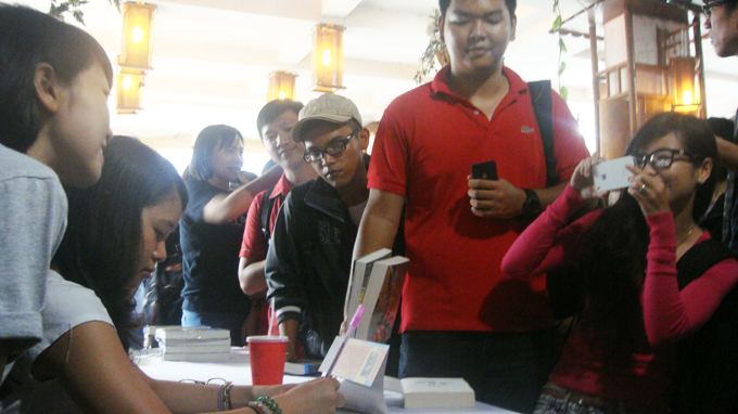 Không chỉ xin chữ ký lên sách, rất nhiều bạn trẻ tranh thủ chụp ảnh cùng nhân vật đang là một trong những tâm điểm cho những tranh luận không ngớt - Ảnh: Trung Uyên
