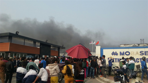 Khói bốc ngùn ngụt trong đám cháy tại nhà máy Mobase Việt Nam