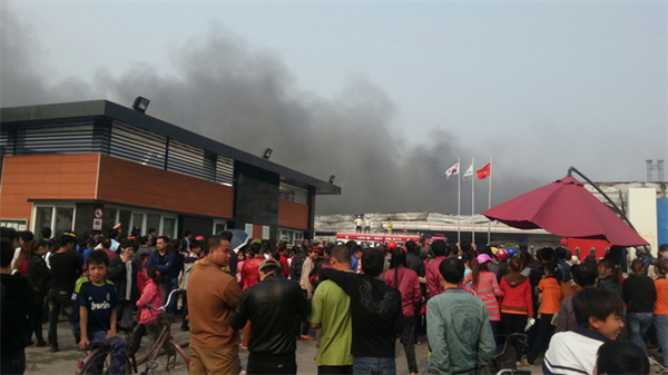 Đám cháy nghi ngút khói nhìn từ bên trong Khu công nghiệp