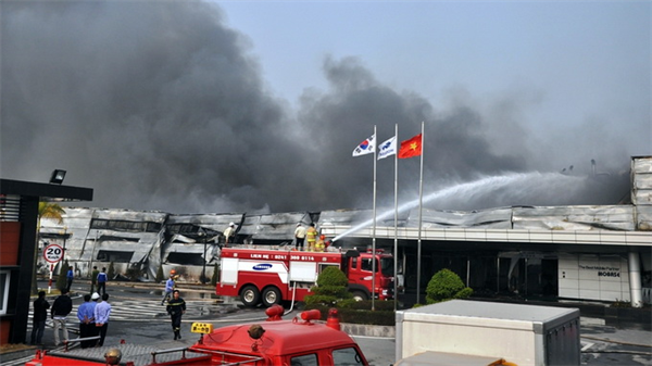 Cháy dữ dội ở nhà máy cung ứng vỏ điện thoại, máy tính