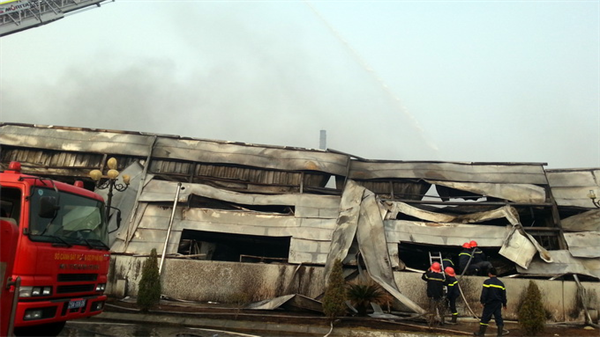 Khung xưởng nhà máy chỉ còn trơ tôn sau đám cháy trưa 5-1