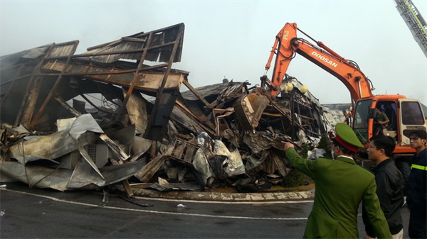 Quang cảnh tan hoang của nhà xưởng sau đám cháy