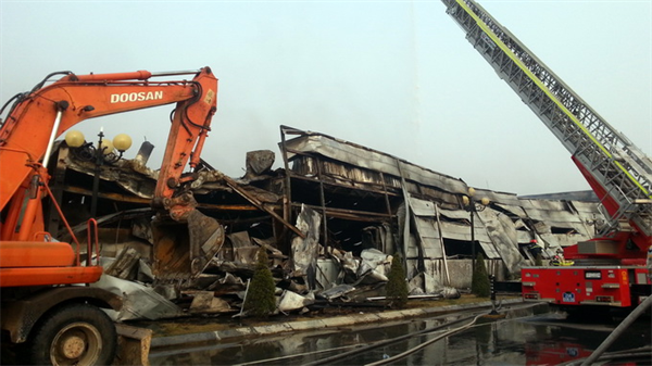 Nhà xưởng bị biến dạng sau khi lửa tắt