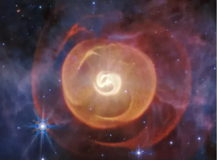 James Webb lần đầu tiên ghi nhận bốn xoắn ốc hình rắn bằng bụi xung quanh cặp sao Wolf-Rayet. © Ảnh : Image: NASA, ESA, CSA, STScI; Science: Yinuo Han (Caltech), Ryan White (Macquarie University); Image Processing: Alyssa Pagan (STScI)