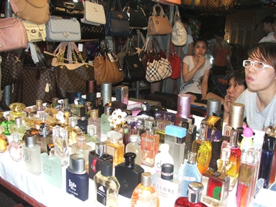 Hiện nay chợ đêm Đồng Xuân thực sự là thiên đường của hàng nhái, hàng Trung Quốc giá rẻ. Một gian hàng trên phố Hàng Ngang bày bán tới cả trăm lọ nước hoa đủ loại mang tên những thương hiệu lớn như Adidas, Ck, Gio, Lacoste, Blue... với giá chỉ hơn 100 ngàn đồng/lọ 120 ml.