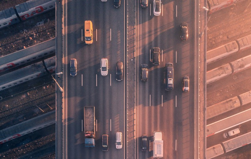 Một bãi đỗ ô tô nhìn từ trên cao.