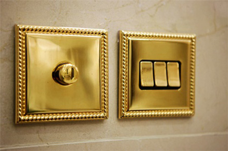 Trong phòng, các công tắc thiết bị điện đều được mạ vàng.