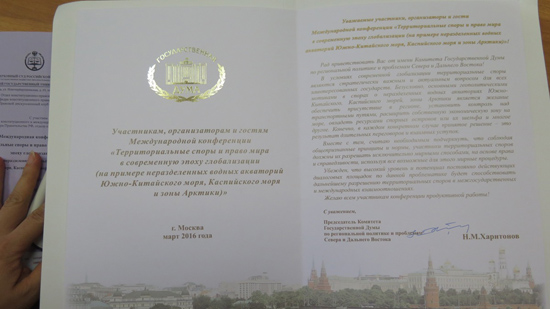 Bức thư  của Duma Quốc gia Nga chào mừng và bày tỏ sự ủng hộ những việc làm pháp lý trong giải quyết tranh chấp ở Biển Đông