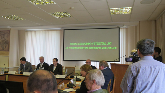 Các chuyên gia của Nga và một số khách mời quốc tế đã dành nhiều bản tham luận để thuyết trình về vấn đề Biển Đông cùng những tranh chấp trong khu vực, đe dọa an ninh, hòa bình thế giới. Các tham luận đều tập trung nêu những diễn biến mới nhất liên quan tới các hoạt động phi pháp của Trung Quốc trong khu vực Biển Đông, từ việc tuyên bố cái gọi là “đường lưỡi bò”, rồi tiến hành xây dựng đảo nhân tạo, tổ chức bay thử nghiệm, lắp đặt hệ thống rađa, tên lửa đất đối không trên một số đảo tranh chấp… Các học giả cũng bày tỏ lo ngại, đưa ra một số nhận định về những hành động có thể có tiếp theo của Trung Quốc trong mưu đồ độc chiếm Biển Đông và khuyến nghị biện pháp giải quyết vấn đề này.