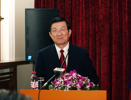 Chủ tịch nước Trương Tấn Sang phát biểu ngắn gọn về tình hình hình đất nước hiện nay, đồng thời chúc bà con người Việt tại LB Nga đoàn kết, kinh doanh có hiệu quả, chấp hành tốt pháp luật của nước sở tại, đóng góp tích cực vào việc củng cố tình hữu nghị giữa nhan dân hai nước Việt Nga.