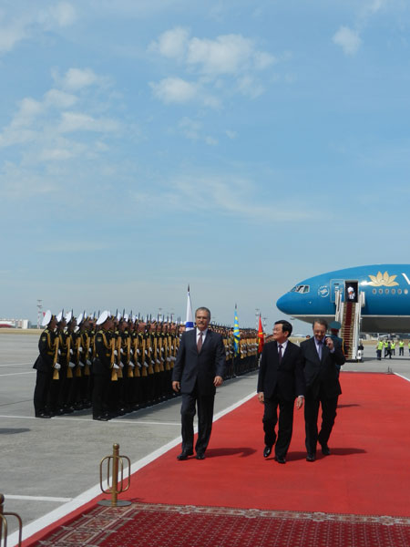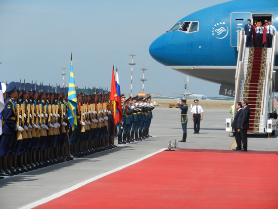 Cuối giờ chiều 26/7 (theo  giờ Việt Nam), Chủ tịch nước Trương Tấn Sang và đoàn cấp cao nước ta đã tới sân bay Vnukovo 2 bắt đầu chuyến thăm chính thức Liên Bang Nga theo lời mời của Tổng thống Vladimia Putin. Lễ đón chính thức  diễn ra trang trọng tại sân bay.