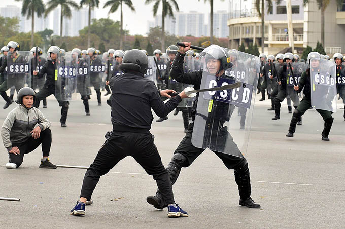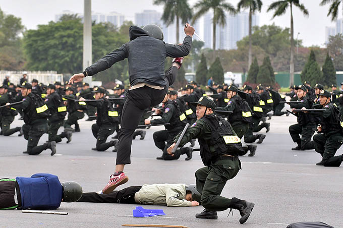 Luyện tập tình huống chống bạo động. Ảnh: VGP/Đoàn Bắc