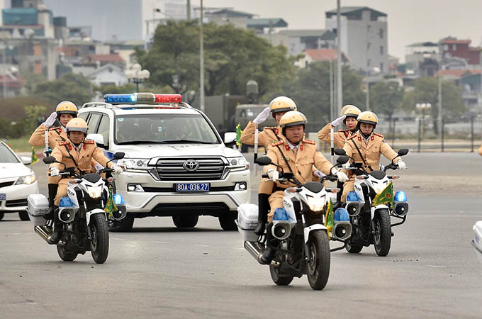 Cảnh sát giao thông dẫn đoàn. Ảnh: VGP/Nhật Bắc