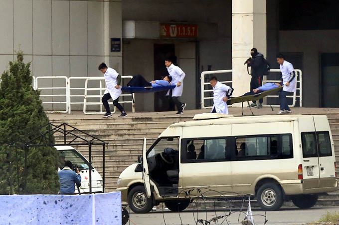 Lực lượng y tế diễn tập.