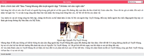 Đó là câu trong bài cải chính dài vừa được đăng tải trên một trang mạng xã hội dành cho phụ nữ (đã được cấp phép là Trang tin điện tử).