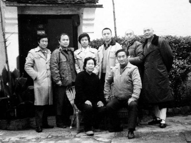 Ảnh do Lục Tiểu Linh Đồng chụp, Từ Thiếu Hoa, Mã Đức Hoa, Diêm Hoài Lễ (hàng đứng bên tay phải)... chụp ảnh với cha mẹ Lục Tiểu Linh Đồng (hàng ngồi) thời gian quay tập Thỉnh kinh nữ nhi quốc.