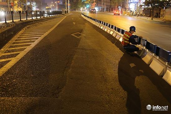 Chỉ trong một đêm triển khai, hầu hết các đoạn đường trong kế hoạch phân làn đã được thi công xong.