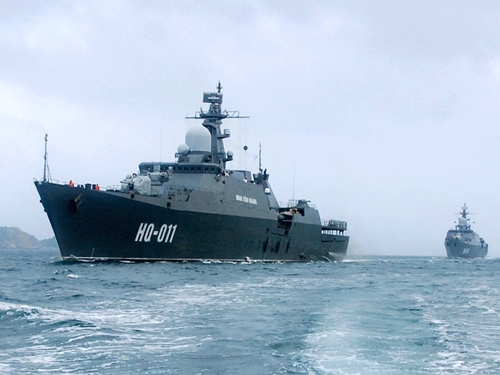 Các tàu hộ vệ tên lửa Đinh Tiên Hoàng và Lý Thái Tổ của Việt Nam đang hoạt động trong vùng biển của cảng Cam Ranh