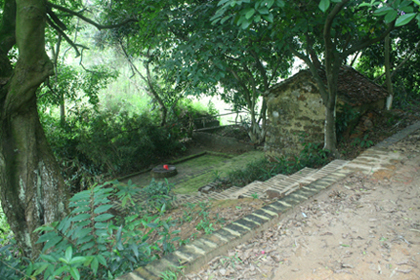 Ngôi miếu với tường đá ong, mái lợp ngói ri, tựa đồi nhìn xuống một lòng giếng nhỏ - bầu sữa huyền thoại