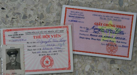 Thẻ Hội viên Hội cựu chiến Binh VN và Thẻ trung đoàn 821 - Liên khu V của Nguyễn Văn Lập