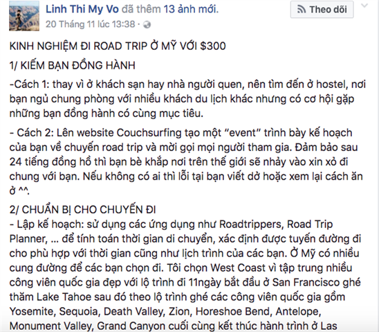 Ấy vậy mà Võ Thị Mỹ Linh - cô nàng từng nổi bật một thời khi là một trong những người sống sót sau vụ lở tuyết trên núi ở Nepal mới đây đã khiến rất nhiều người hứng thú khi chia sẻ về hành trình phượt xuyên Mỹ mà chỉ tốn vỏn vẹn... 300 đô, tức hơn 6 triệu VNĐ. Tưởng không thật nhưng thật không tưởng đấy nhé!