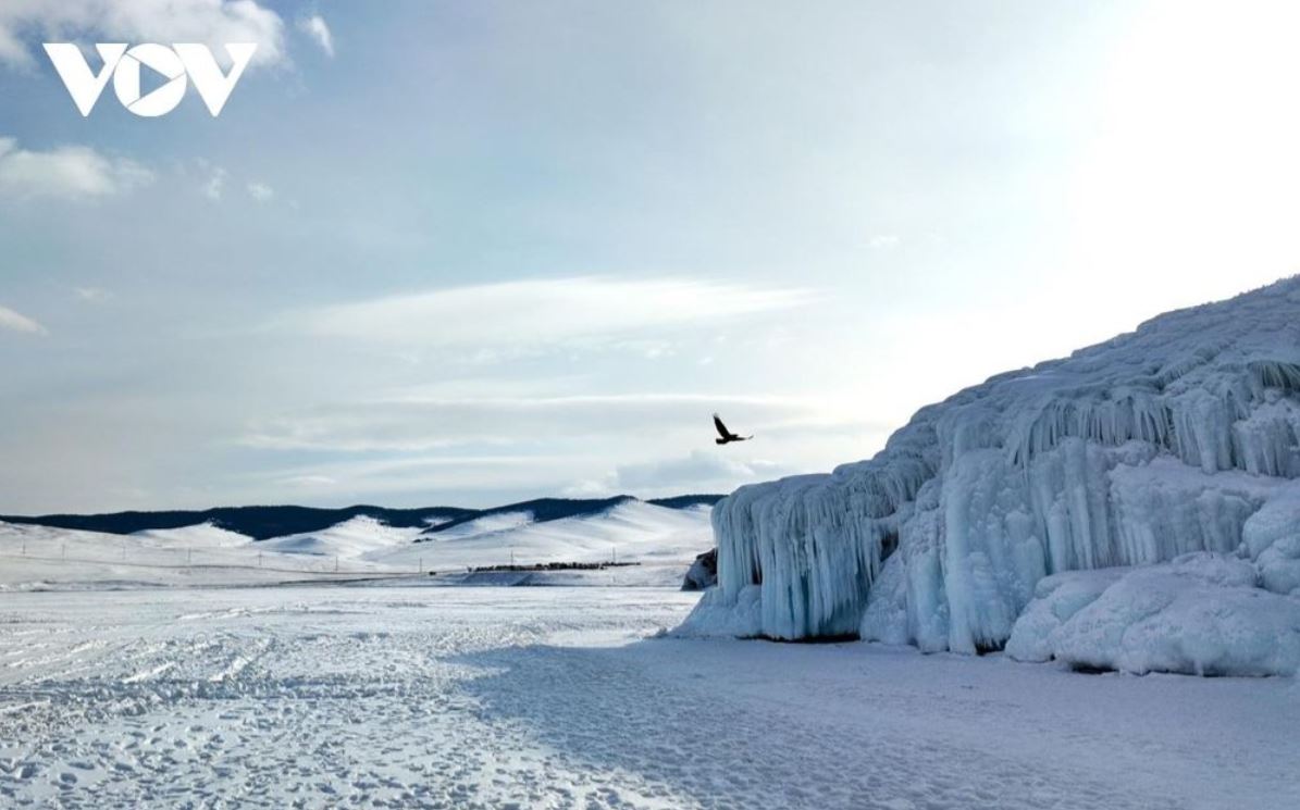 Trên hành trình tới đảo Olkhon - trái tim của Baikal, những dãy núi tuyết khi ẩn khi hiện sau màn sương lạnh, như một lời mời kín đáo dẫn lối du khách tiến sâu hơn vào thế giới bí ẩn phía trước. Người ta tìm đến đây để chiêm ngưỡng mặt hồ băng trong vắt như pha lê, nơi từng lớp băng xếp chồng thành những vệt sáng xanh thẳm. Từ vách đá ven bờ, những dải băng rủ xuống như chuỗi ngọc lấp lánh giữa trời đông, lặng lẽ ghi dấu ấn thời gian. Nằm trên mặt băng, giữa không gian tĩnh mịch ấy, người ta có cảm giác như nghe thấy Baikal đang thì thầm một cách chậm rãi và đầy nội lực, như tiếng thở cổ xưa của Trái Đất.