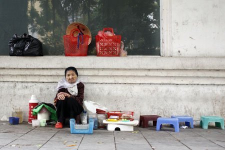 Cụ già bán nước co ro chờ khách trên phố Tràng Thi