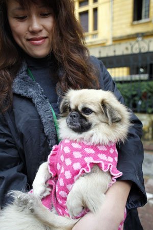 Chó cũng được chủ nhân mặc áo ấm