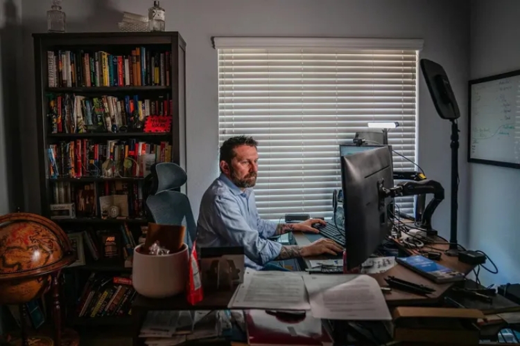 Shawn VanDiver, người sáng lập #AfghanEvac, tại văn phòng ở nhà của mình ở San Diego. Ảnh: New York Times.