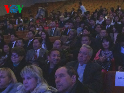 Những tiết mục văn nghệ đặc sắc mang âm hưởng dân ca của Việt Nam với sự trình diễn của các bạn trẻ, phần lớn là sinh viên các trường đại học cùng nhiều ca sỹ cộng đồng đến từ ba thành phố lớn, có đông người Việt Nam sinh sống là Kiev, Kharkov và Odesa đã làm cho bầu không khí của khán phòng trở nên ấm áp, sống động và thật gắn bó những người bà con xa xứ và bạn bè nước sở tại Ukraine./.