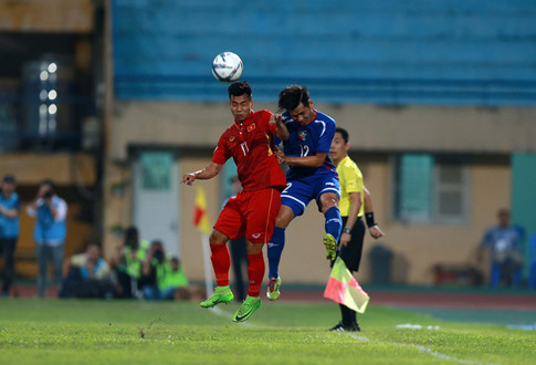Tuyển VN đang nắm giữ thế trận. Văn Thanh và Đinh Thanh Trung chơi rất xông xáo.