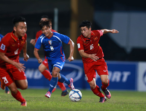 Xuân Trường chuyền đẹp, giúp Văn Toàn loại thủ môn Đài Loan, tiếc là pha dứt điểm của anh đứa bóng chệch cột dọc.