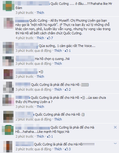 Giám khảo xinh đẹp Hồ Ngọc Hà đã được cư dân mạng "like" mạnh bởi những câu nói pha trò và sự hiểu biết phong phú về âm nhạc của chị ấy. Đặc biệt câu nói "Quốc Cường là của Hà Hồ" khi "giành" thí sinh có tên là Quốc Cường đã ghi điểm cho chị ấy rất nhiều bởi sự hài hước và tinh tế.