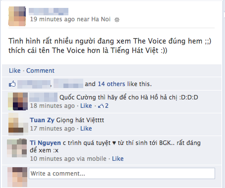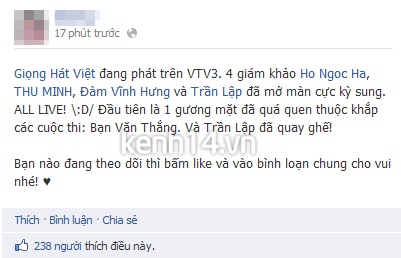 Tám rôm rả về Giọng hát Việt trên Facebook