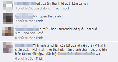 Sự hào hứng ban đầu nhanh chóng bị giảm xuống bởi "chuyện cũ nói mãi" của các show truyền hình của Việt Nam đó là vấn đề âm thanh. Theo như cảm nhận của cư dân mạng nói chung thì chất lượng âm thanh rất... chán, thua xa với xem The Voice của Mỹ trên kênh AXN.