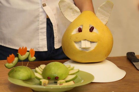 3. Phần thi khéo tay: bình thường những tưởng các chàng trai X-MEN vụng về nhưng sau cuộc thi này chúng ta phải suy nghĩ lại, bởi sự khéo léo được thể hiện qua các tác phẩm nghệ thuật cắt tỉa hoa quả cùng sự thuyết trình rất phù hợp đã tạo nên những tác phầm vô cùng nghệ thuật, độc đáo và ngon miệng tới khán giả.