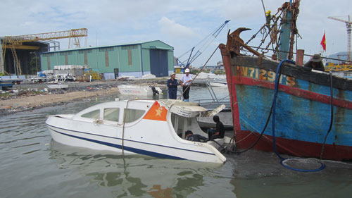 Ca nô biển kiểm soát H29 - BP hiện đã được kéo vào bờ - Ảnh Nguyễn Long