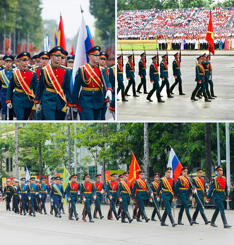 Đội hình quân nhân Liên bang Nga dự lễ diễu binh A80 tại Hà Nội.