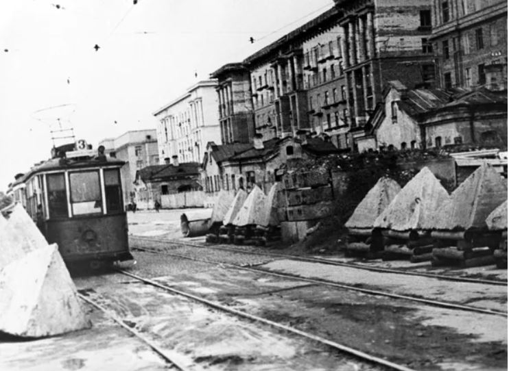 Các chướng ngại vật chống tăng trên đường phố. Ảnh từ Bảo tàng Lịch sử Nhà nước Leningrad. © Sputnik