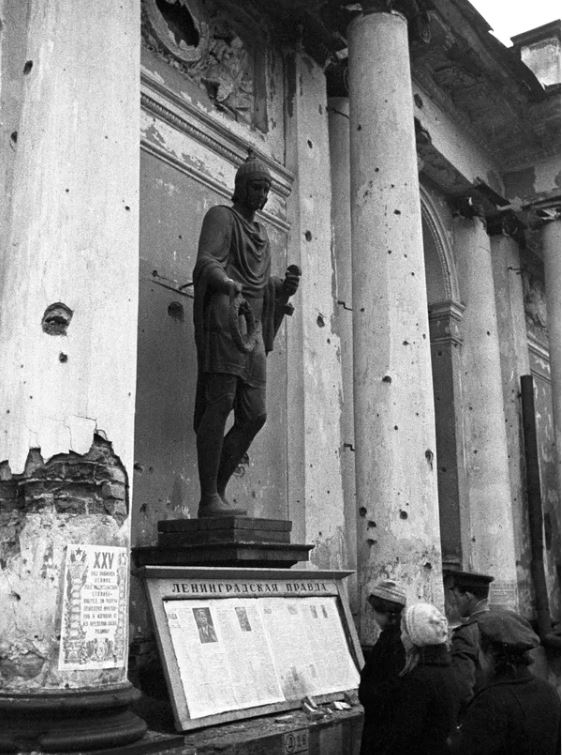 Sau khi phong tỏa Leningrad được dỡ bỏ, người dân thành phố tháo dỡ các hầm trú ẩn khỏi tượng đài Peter Đại đế. © Sputnik / David Trahtenberg