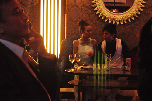Đan Trường cẩn thận chăm sóc cho bạn gái ở phía hậu trường của quán bar.