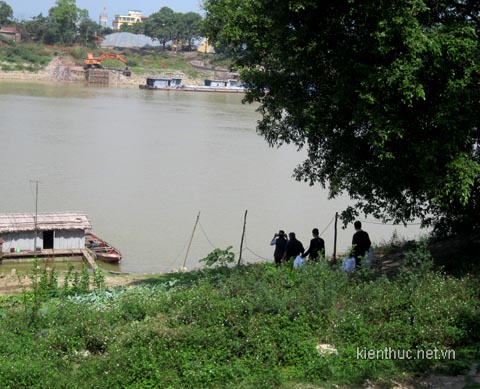 Khoảng 12h trưa, toàn bộ “nước thiêng” đã bán hết, nhưng vẫn còn vài vị khách quen nữa gọi điện “đặt hàng”, ông Tùng quay sang chúng tôi: “Các chú trông quán giúp tôi khoảng 5 phút nhé”, nói đoạn, ông xách hai chiếc can 10 lít đi xuống bờ sông. Một lát sau ông Tùng quay lại với hai can đầy nước. Khi chúng tôi thắc mắc sao lấy “nước thiêng” nhanh thế, ông Tùng cười: “Chúng tôi chỉ lấy nước ở ngã ba sông khi dẫn khách đi thôi, chứ nước bán ở đây chủ yếu múc ở ven bờ, chứ mấy ai mà đi ra giữa sông lấy được. Nói thực với các chú chứ, thiêng hay không thiêng cũng là nước sông, nước nào mà chả được”.