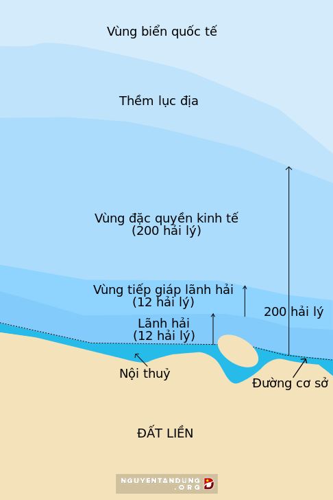 Khi gọi ‘Vùng biển Việt Nam’, ‘Hải phận Việt Nam’ ta hiểu rằng đó là tên gọi chung cho cả Nội thuỷ, Lãnh hải, vùng Đặc quyền kinh tế và Thềm lục địa. Khi gọi ‘Lãnh hải Việt Nam’ ta hiểu rằng đó là tên gọi của một vùng biển rộng 12 hải lý tính từ đường cơ sở dùng để tính chiều rộng lãnh hải.”