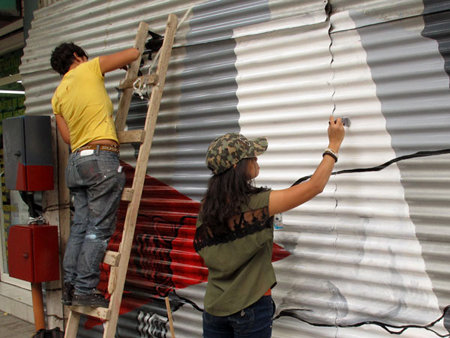 Huyền Chíp vẽ tranh tường với cô bạn hoạ sĩ ở Argentina - Ảnh nhân vật cung cấp trước đó