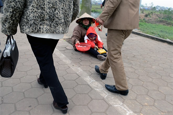 'Cái bang' trực sẵn mong chờ lòng hảo tâm của người đi hội.
