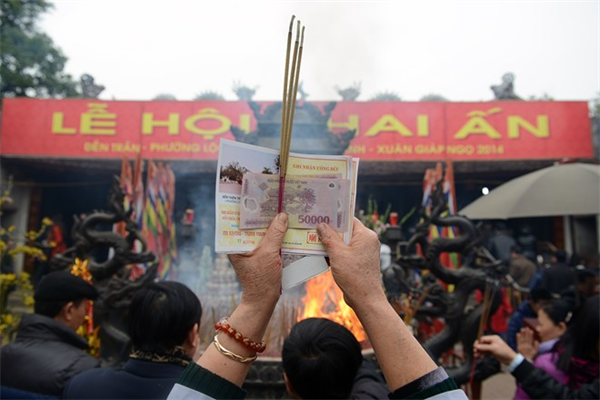 Nhiều du khách chuẩn bị sẵn sàng hàng trăm nghìn đồng công đức.