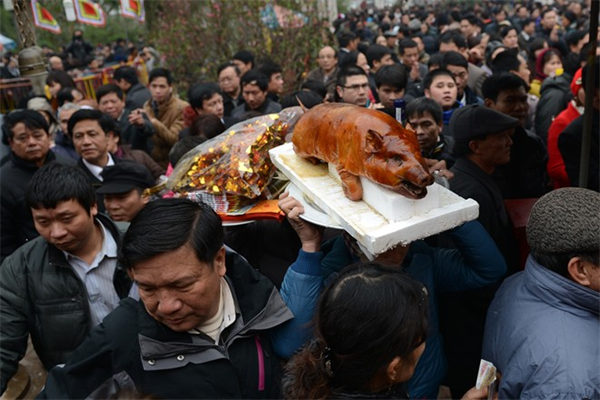 Có gia đình mang hẳn một con lợn sữa quay hiến tế.
