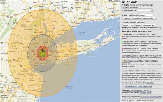 Bất cứ ai cũng sẽ cần đến “bản đồ hạt nhân”. Tấm bản đồ này có thể xác định khu vực bị ảnh hưởng cũng như ước tính số thương vong khi một quả bom hạt nhân được thả xuống khu vực cụ thể. Ảnh: The Richest.