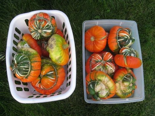 Cận cảnh quả bí ngô úp mũ khá lạ.
